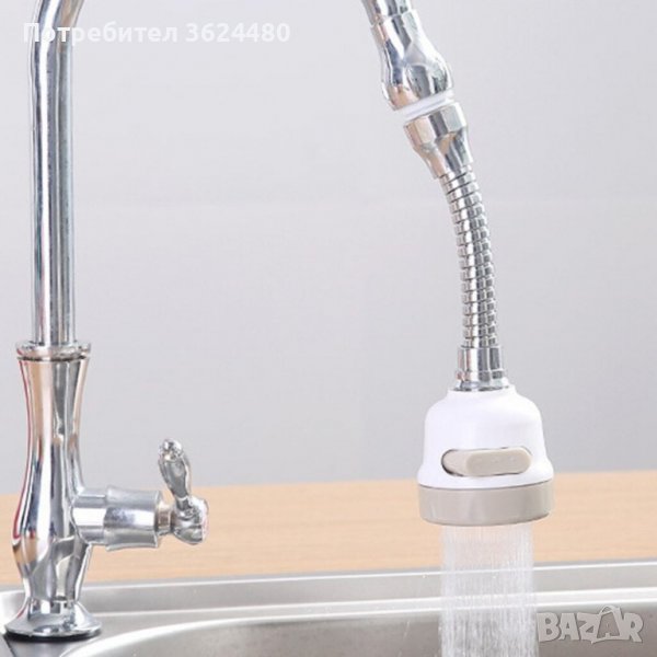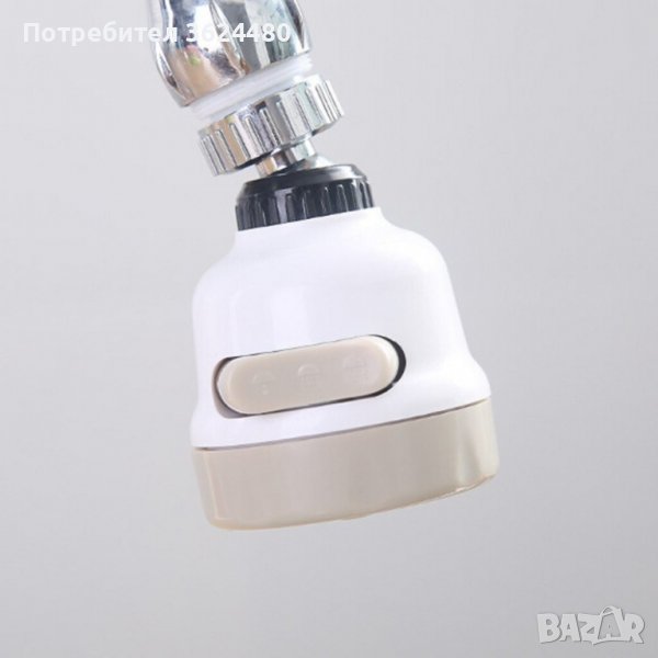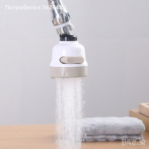 Удобен накрайник, универсален и съвместим с повечето чешми. Той има 3 функции на водната струя, които се променят само с един бутон и ви спестяват вода. Перката във вътрешната част на накрайника намалява налягането на водата и предпазва от пръски. С функцията на ротация на 360 градуса, водата достига и до най-отдалечените ъгли на мивката.