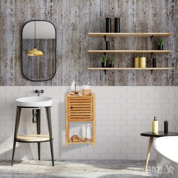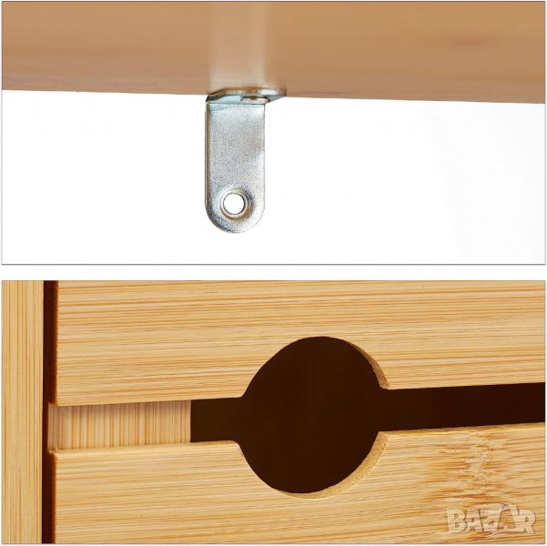 Бамбукова етажерка за баня Relaxdays, 2 рафта и 1 отделение с врата, баня и кухня.