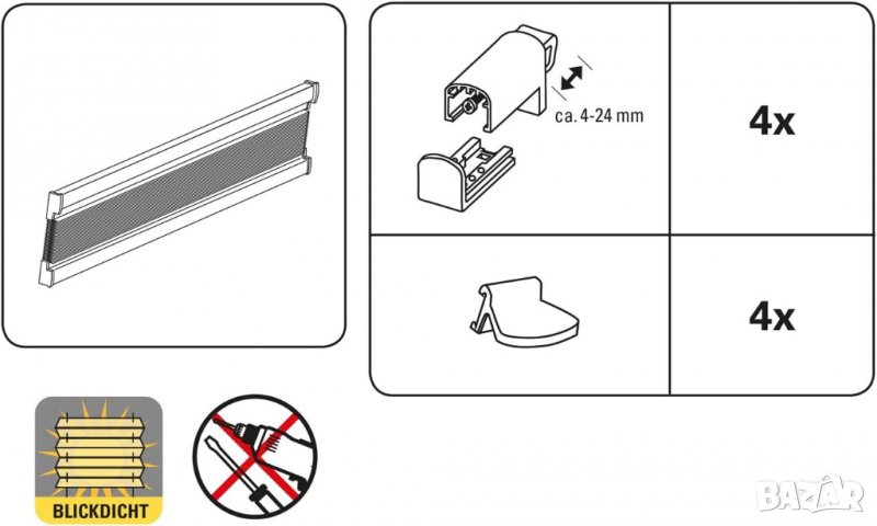 прозореца (диапазон на регулиране приблизително 4-24 mm), скоба от