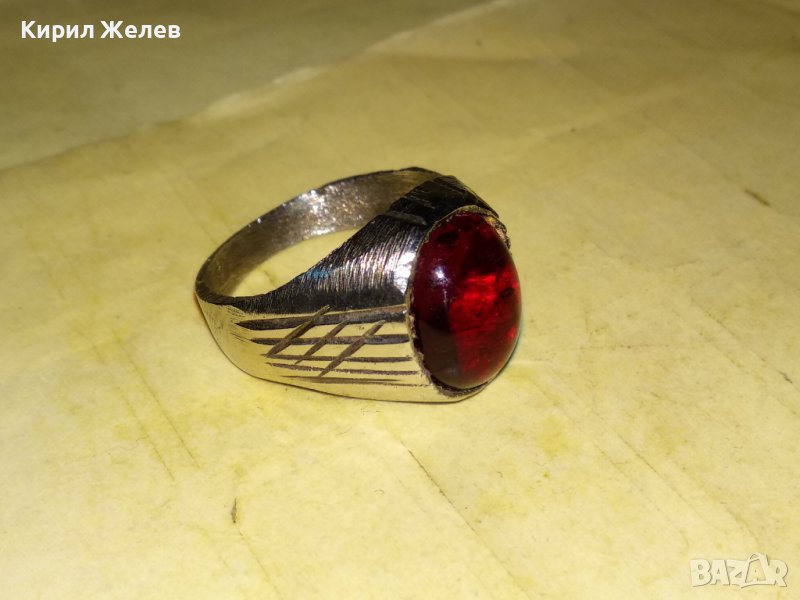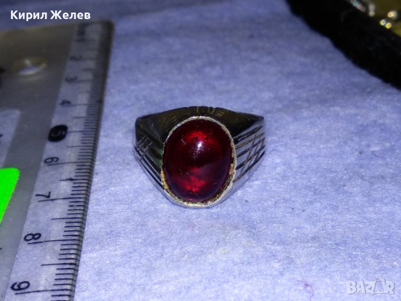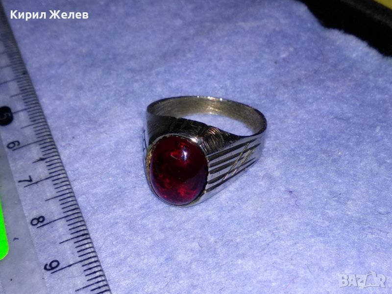 КРАСИВ КЛАСИЧЕСКИ АРИСТОКРАТИЧЕН ПРЪСТЕН от ПОСРЕБРЕНА БЛАГОРОДНА СТОМАНА с ПОЛИРАН КРИСТАЛ 17646