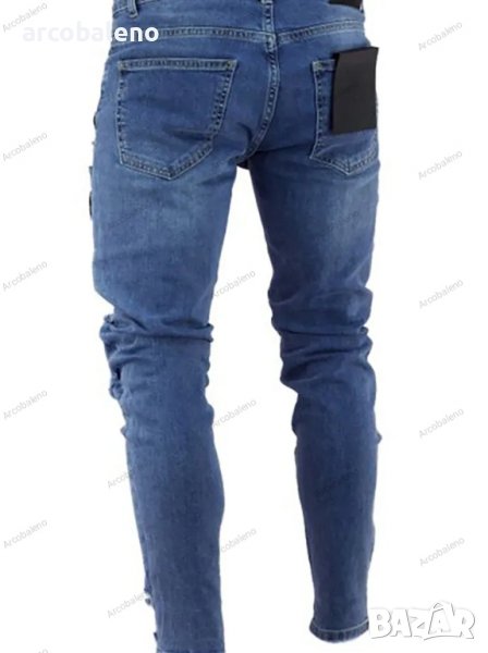 Мъжки слим крой дънки със стилни протрити детайли. Изработена от леко еластична плетка за комфорт. Разполага със страхотни лепенки и наклонени джобове за практичност. Перфектен за улично облекло и ежедневни излети. Универсален за четирите сезона и ежедневни дейности. Комбинирайте с кецове и тениски за модерен стил.