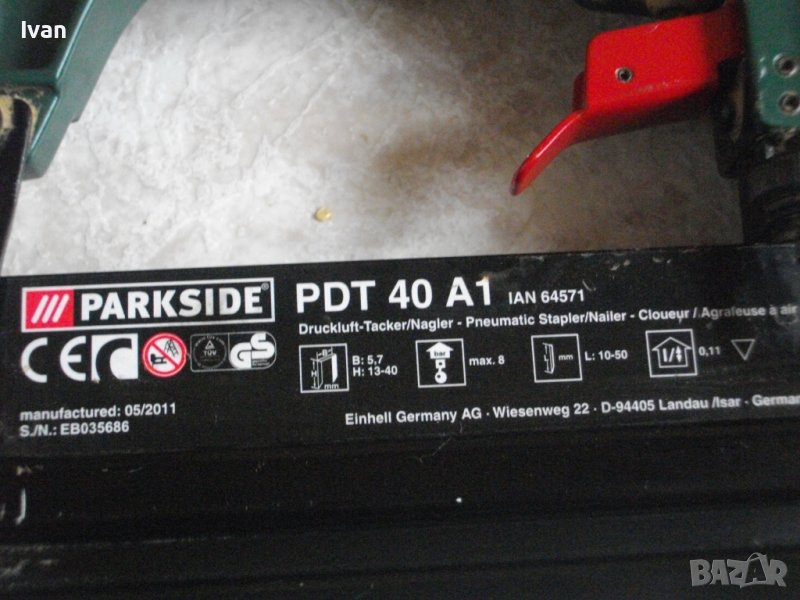 PARKSIDE PDT 40 A 1 - немски комбиниран - размер аксесоари - скоби 13-40 мм/пирони 10-50 мм - цена 159 лв.