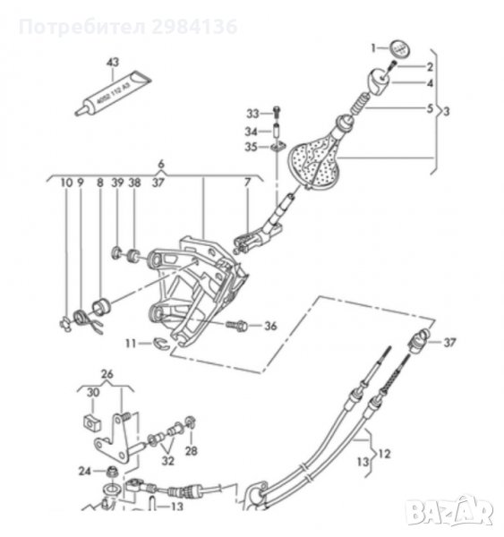 Топка за Скоростен Лост с маншон за VW Transporter T5 - 5, 6,Скорости → Обява 39978413