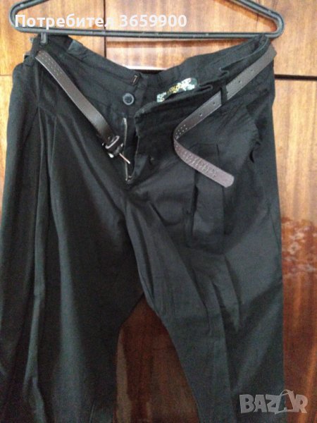Панталона е черен, с плохи, за по-широк ханш.С джобове отпред и отзад.