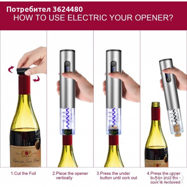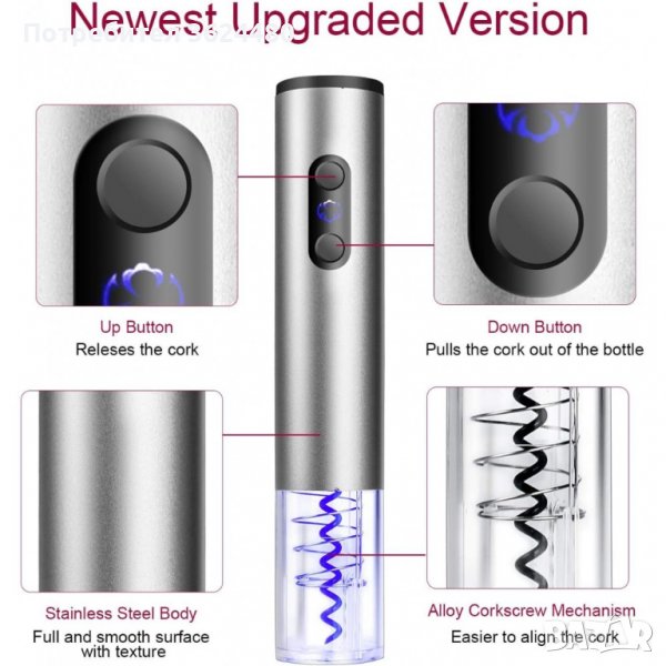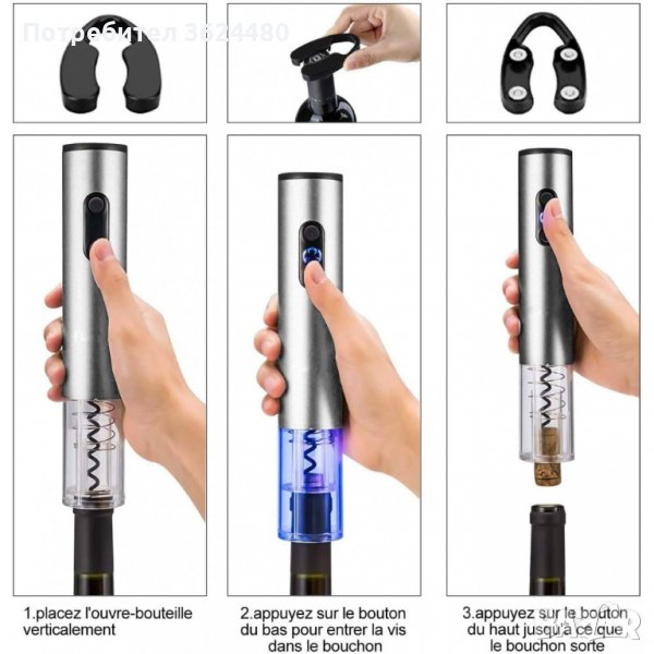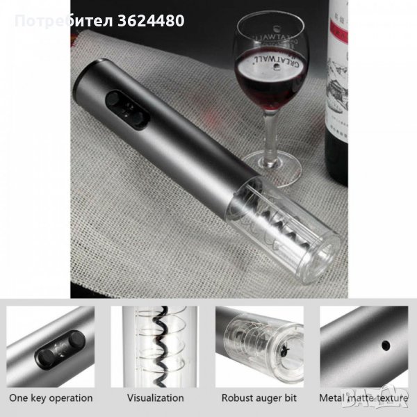 ЕЛЕКТРИЧЕСКИ ТИРБУШОН ЗА ВИНО - КОМПЛЕКТ 4 ЧАСТИ → Обява 39984419