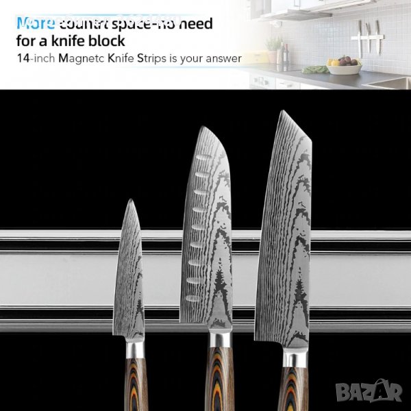 Изработена от алуминиева сплав и много силни магнити, които държат много здраво ножовете.