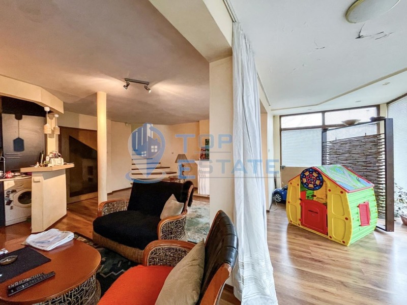 Топ Естейт Недвижими имоти Ви предлага четириетажна къща с прекрасна панорамна гледка към град Велико Търново. Имотът е с отлична локация само на няколко минути от центъра на града. Намира се в кв. Варуша, предпочитан район, който осигурява спокойствие от градската среда и същевременно в близост до него има много магазини, ресторанти, заведения и исторически забележителности. Къщата е на четири етажа, като на първия приземния етаж има самостоятелно студио, коридор и помещение което е възможно да се пригоди за баня с тоалетна. Втория етаж е разпределен между антре, голяма дневна с кухненски бокс и баня с тоалетна. Третия етаж е с две спални, южна тераса с уникална гледка, коридор и баня с тоалетна. На четвърти последен е таванското помещение, което се нуждае от ремонт и може да се направи по желание на новите собственици. Имотът е в много добро състояние с външна изолация и PVC дограма. Отоплението е на камина с централно отопление и климатици. Номер на оферта: 1052. We speak English and German.