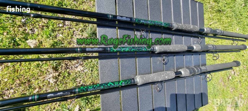 ВЪДИЦА за риболов на сом. Нови пръчки Deluxe Blak серия KLD дължина 2.7м. 3 м. 3.4m 100-350 gr е въдица за тежък риболов. Въдица за най-големи натоварвания при риболов на сом, за Големи Риби. Отлична въдица за риболов на сом на големи реки и езера, морски риболов. Дръжката е изработена от EVA пяна, предпазва от изплъзване от ръката. Водачите са с високо качество - SIC! Много качествен макародържач, До макародържача е 2.70м -38см, 3.00м -42см, 3.40м -46см до края на въдицата. Материал карбон 24ТС + композит Въдиците са нови.