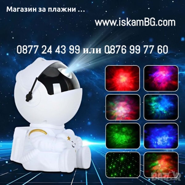 В комплекта ще откриете главния виновник за красотата на космоса – Космонавта – RobiStar. Също така, има поставка, на която да стъпи и кабел, с който да се свърже. Дистанционното управление Ви позволява да нагласявате всякакви светлини потоци.