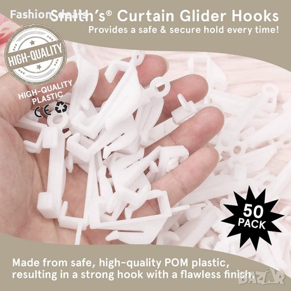 Нови 50 броя Куки за завеси пердета прозорец Пластмасови плъзгачи → Обява 39991530