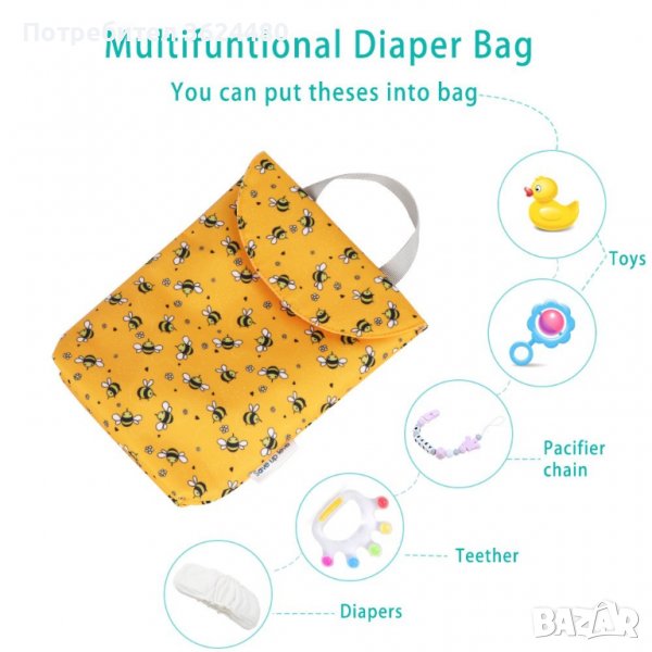 Освен като несесер за памперси, може да се ползва и за съхранение на залъгалки, биберони и малки играчки.