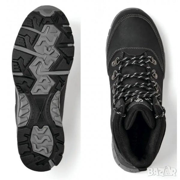 Горна част от устойчив на разкъсване рипстоп материал. Двойно ухо за плътно фиксиране на петата. Амортизирана подложка за комфорт под краката, компресионна EVA междинна стабилизираща подпора за подобряване на цикъла на походката и издръжлива каучукова външна подметка.