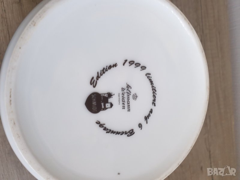 Много рядък порцеланов буркан за бисквити, направен за бисквитки Schmidt от Seltmann Weiden през 1999 г. за хилядолетието 2000 г. Буркана е с размери приблизително 12,5см височина, 12,5см диаметър. Странната/уникална характеристика на този буркан е самолетът, който се насочва директно към кулите близнаци на Световния търговски център в Ню Йорк. Но е направен през 1999 г., 2 години преди 9-11. Мотивът показва 6 различни града от световна класа (по посока на часовниковата стрелка): Берлин (с "2000", изпъкнал на изображението), Лондон, Ню Йорк, Сан Франциско, Пекин и Москва (Москва). Капакът е SKS Zinn 95% Pewter.