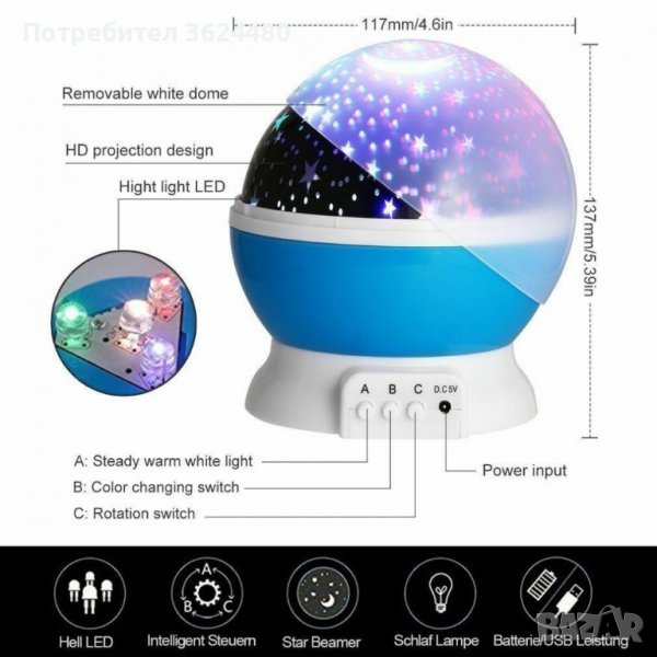 - Постоянна нощна светлина - За целта натиснете бутон A