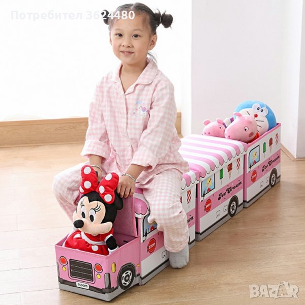 Голяма кутия за съхранение на играчки в детската стая или други аксесоари в дома. Състои се от две отделения. Кутията се сгъва, когато не е необходима и не заема място. Ярки и красиви цветове! Здрава конструкция – може да се използва като столче, табуретка. Изработен от здрава тъкан с подсилващи елементи.