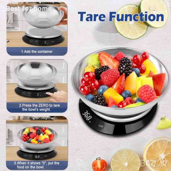 【Лесно тариране】 - Включва функции за тариране и автоматично нулиране за лесна съвместимост с други контейнери; Измервайте в чаша, чиния или купа с различен размер с надеждна и безпроблемна точност.
