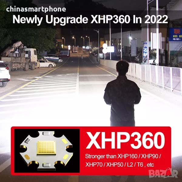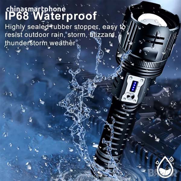 Мощен фенер за лов и риболов, прожектор, с диодна матрица XHP360, водоустойчив IP68