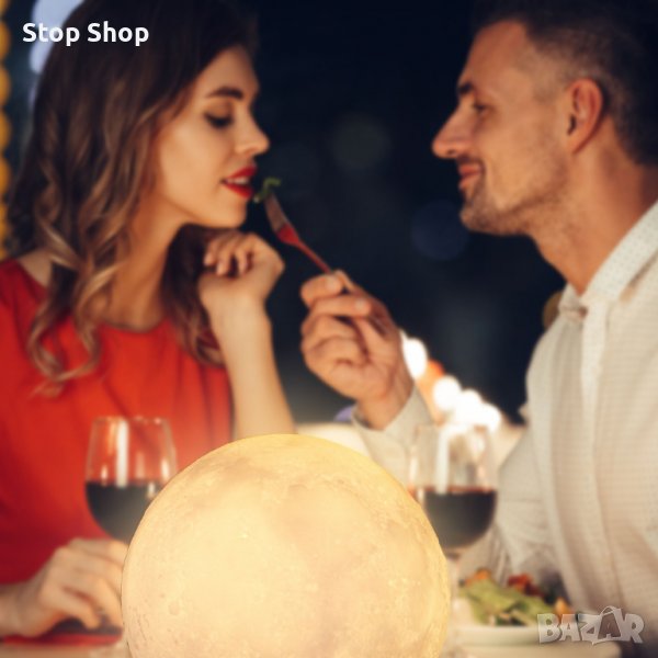 Тази красива декоративна лампа окъпва дома ви в уютна светлина! Необикновената настолна лампа е отпечатана с 3D принтер и следователно изглежда объркващо подобна на истинската луна (с изключение на размера, разбира се). Не само яркостта може да се регулира непрекъснато чрез сензора за докосване на интерфейса за зареждане, но също така и цветът на светлината. Лунната лампа може да свети в топло или студено бяло.