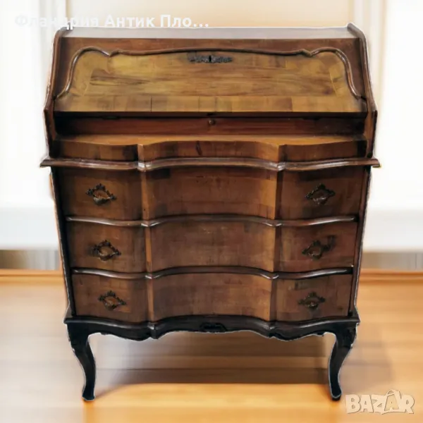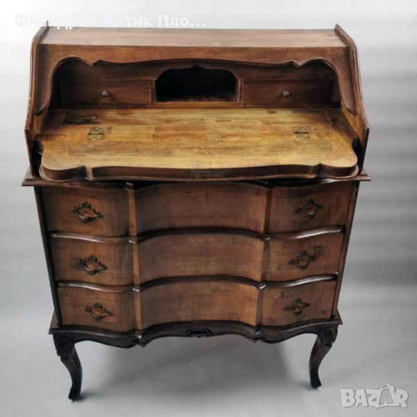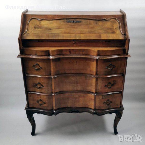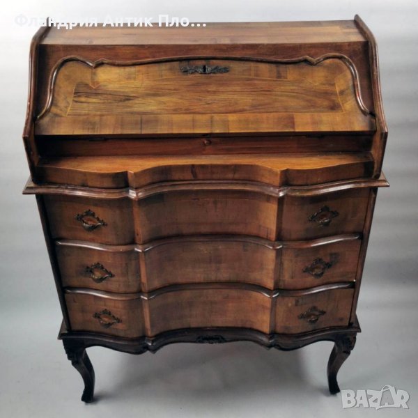 Красиво старинно италианско писалище, изработено от масивно дърво, с естествен орехов фурнир.