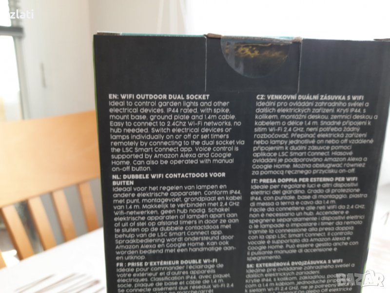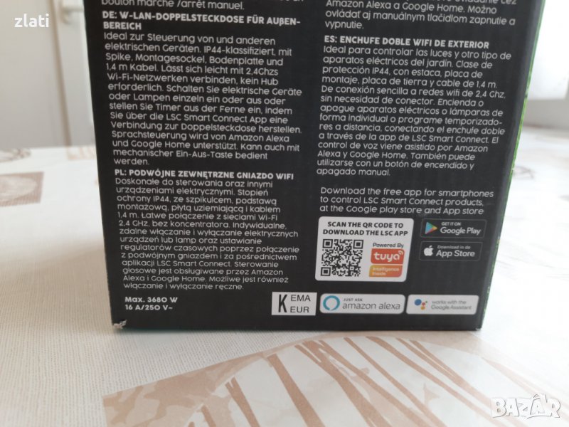 Ако току-що сте окачили цялата си градина, пълна със светлини, едва сега откривате нашите удобни продукти LSC Smart Connect. Не се притеснявайте: неинтелигентните лампи и уреди също могат да бъдат направени умни. За щастие за това не е нужно пълно образование, а само този смарт контакт. След проста инсталация можете лесно да управлявате устройствата си с вашия смартфон. Полезен! Двойният контакт също е водоустойчив и следователно особено подходящ за употреба на открито.