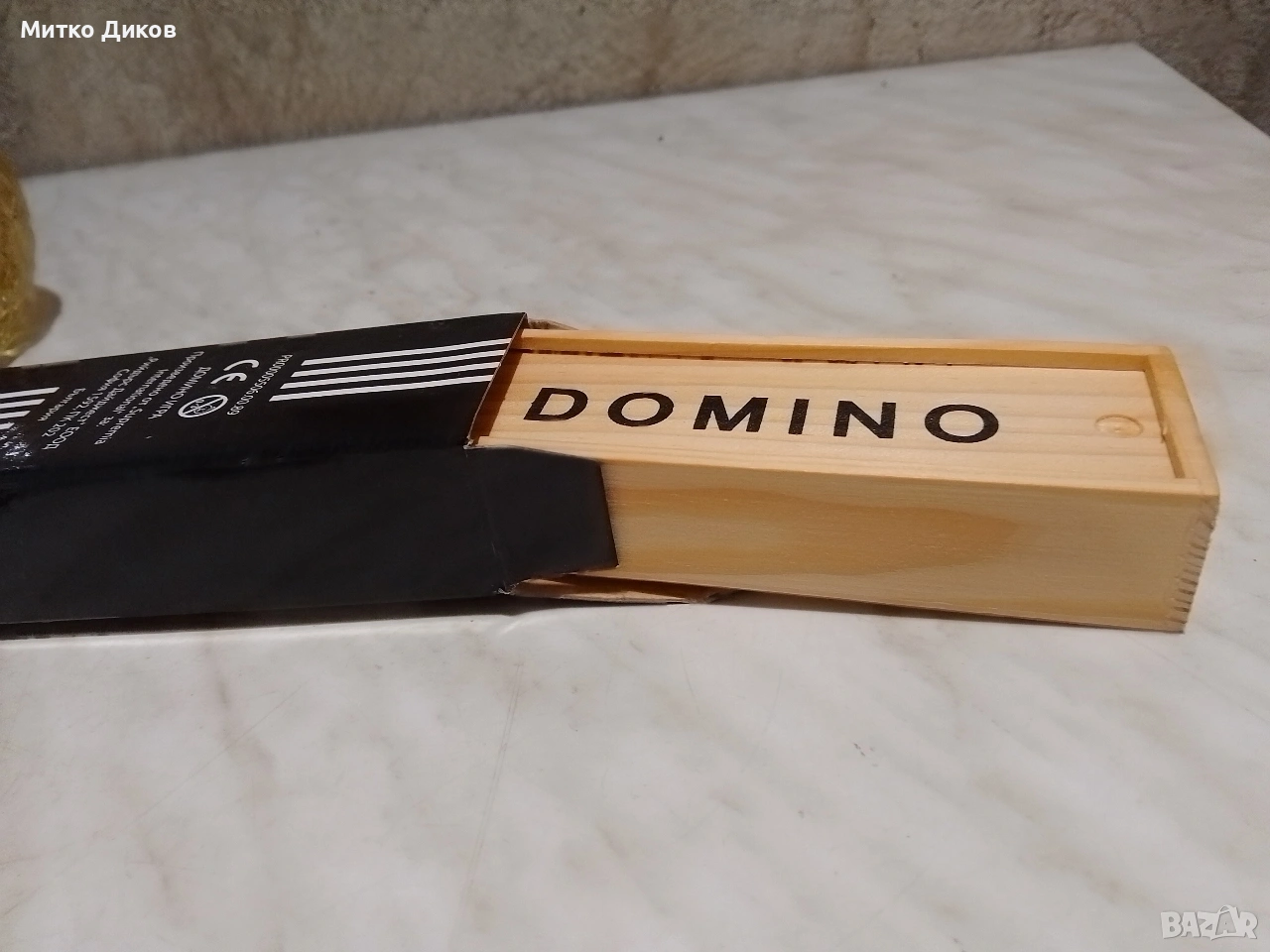 Домино марково ново 28 пула кожен калъф костни пулове 20х45мм-един брой-10лева -два броя-15лева-има със черно-синьо-червено и зелено калъвче -в дървената кутия е 3 евро