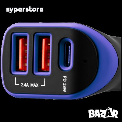 Зарядно за кола CANYON C-08, 2xUSB, 1xUSB Type-C, универсално, Лилав SS30183 → Обява 40000739