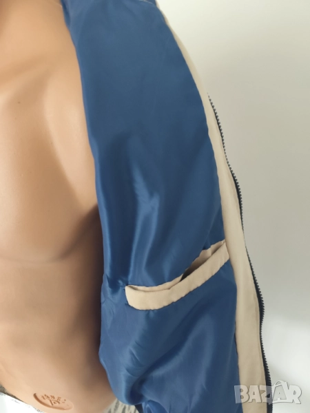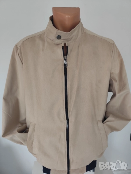 Мъжко пролетно-есенно яке тип бомбер. Спортно-елегантен модел, произведено в Италия, материя- изкуствена подобие на гладко кадифе, цвят - охра, два външни и един вътрешен джоб, ластични маншети в тъмно син цвят. Посочил съм състояние НОВО, защото е слагано само веднъж и е прибрано за съхранение. Хубава дреха, която приляга както на дънки, така и на спортен панталон, Размер по етикет L и в частност: