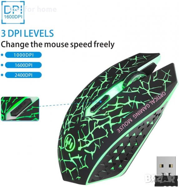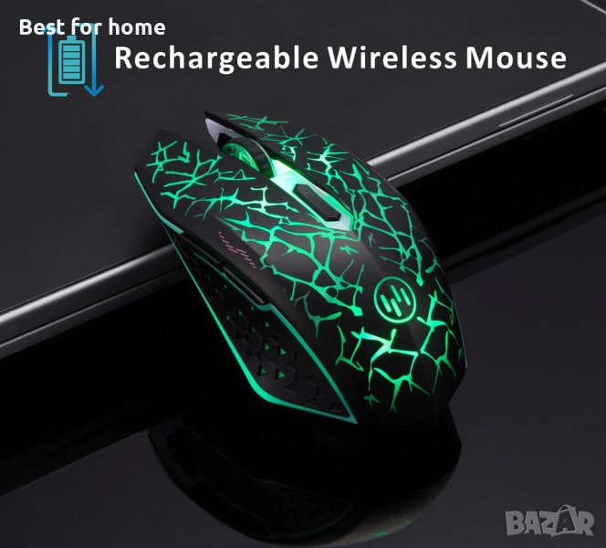 LED оптична гейминг мишка с USB приемник, 3 регулируеми DPI нива и 6 бутона,акумулаторна,безшумна