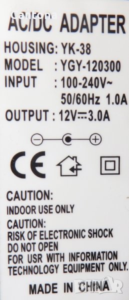 Захранващ адаптер с изходно стабилиирано напрежение 12V - 3000 mA и мощност 36W.