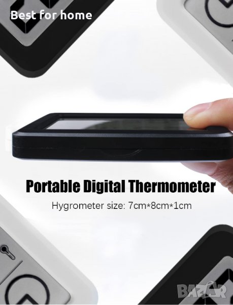 Цифров часовник, термо/хигрометър, малък,тънък, стоящ часовник, подвижна стойка,ЧЕРЕН