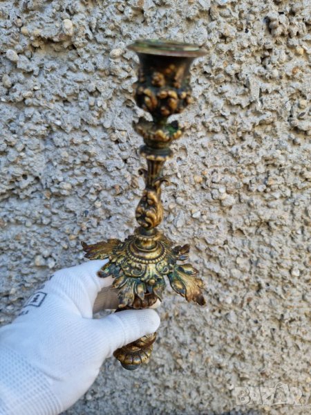 Част от свещник за съжаление останалата част не е налична предлага се това което е на снимките на 100% антично и автентично.