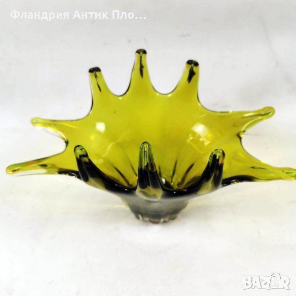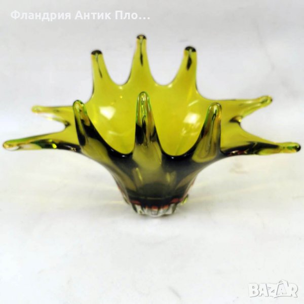 Представяме Ви едно произведение на стъкларското изкуство - бонбониера от зелено стъкло в артистична форма.