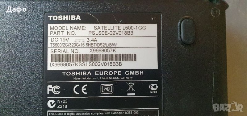 Лаптоп Toshiba L500-1GG на части, снимка 1 - Лаптопи за работа - 40010669 Лаптоп Toshiba L500-1GG на части, снимка 2 - Лаптопи за работа - 40010669 Лаптоп Toshiba L500-1GG на части, снимка 3 - Лаптопи за работа - 40010669 1/3