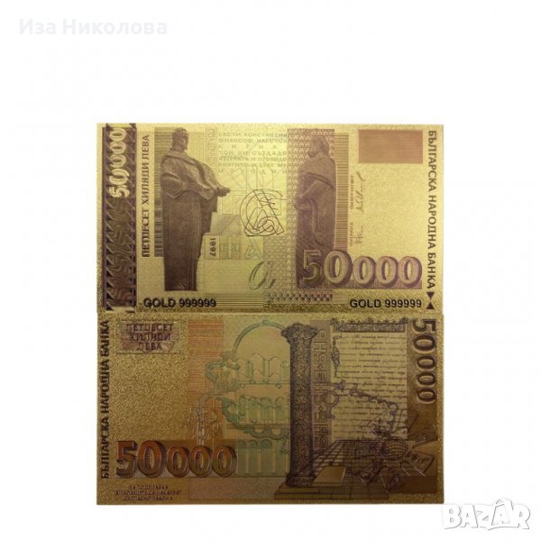 Позлатена 24К банкнота от 50 хиляди лева → Обява 40013389