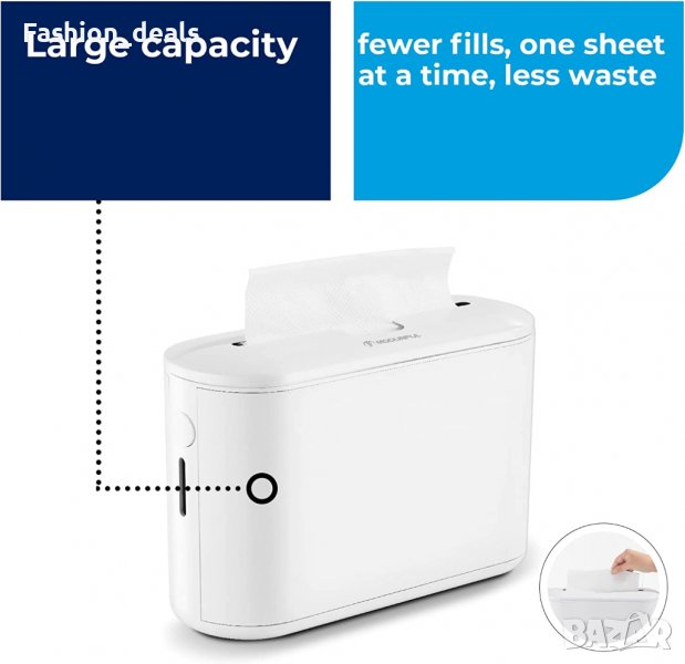 диспенсър има механизъм за плавно отваряне, който гарантира, че няма да пререже хартиените кърпи при дозиране.
