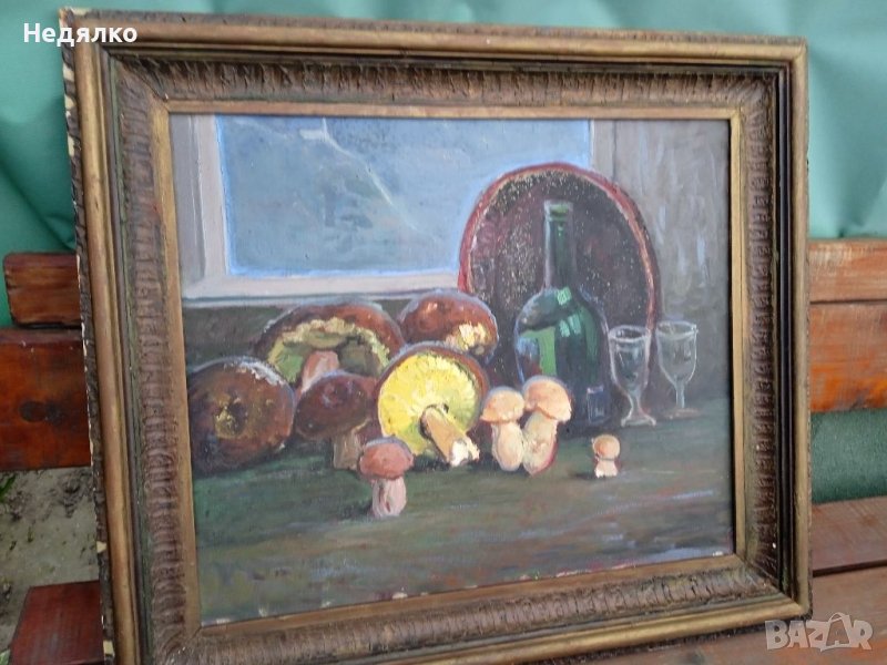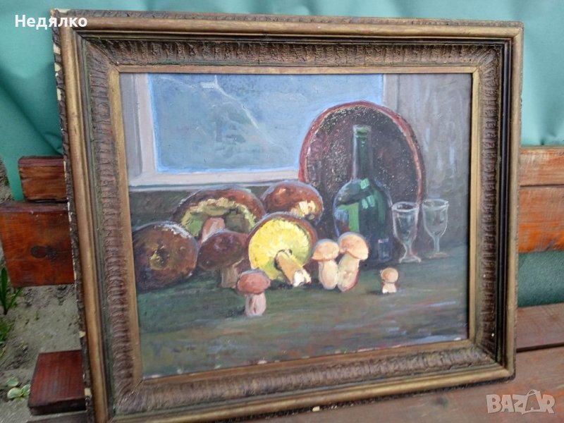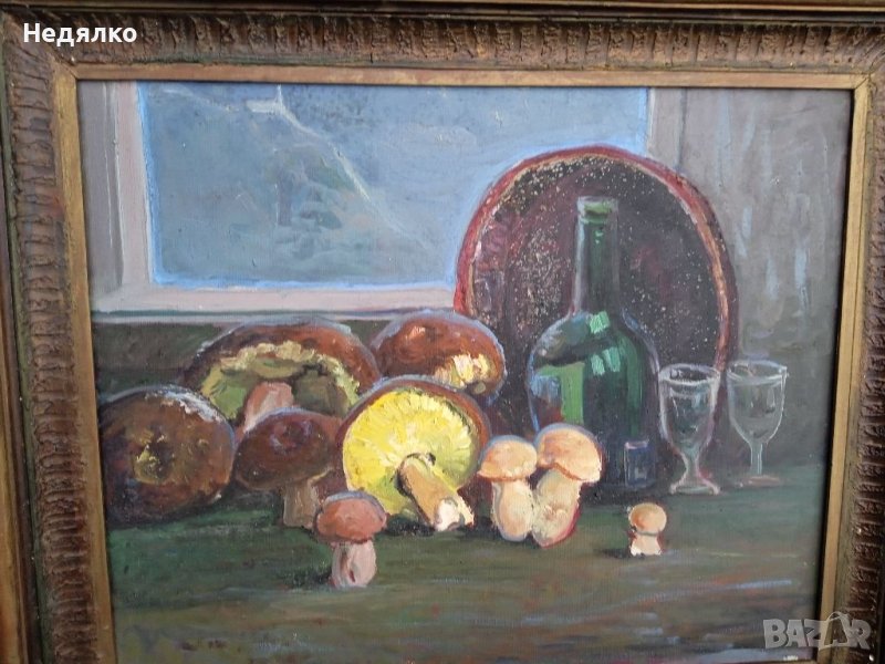Красота с оригинална рамка,леки забележки в ляво и отдолу, платното е перфектно.За сериозни, само на телефона!Подпис на гърба, Йордан Йорданов , натюрморт,период на изработка около 1950-та година.