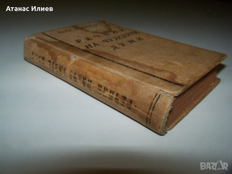 Малък джобен речник на чуждите думи издание 1945г. Автор Ружа Н. Славчева. Речника е подвързан с твърди корици, 352 стр. Като цяло е в много-добро състояние, но има следи от намокряне на предната корица. Размери 8х11,5 см.