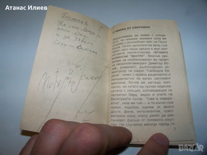 Много рядка библиофилска книга "Пророчествата на Баков", автор Петър Баков от Петрич, приятел на баба Ванга. Книгата е с автограф и посвещение за журналистката Цветанка Ризова. Книгата е в много добро състояние, меки корици, 520 стр с илюстрации от Калина Пенева.