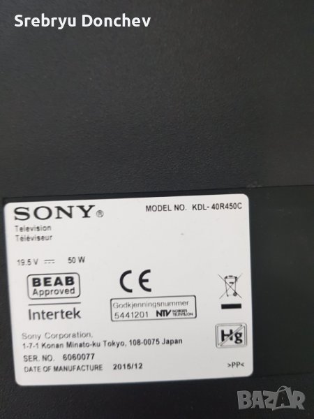 Sony KDL-40R450C със счупен екран - 1-894-095-21 (173534221), снимка 1 - Части и Платки - 40021373 Sony KDL-40R450C със счупен екран - 1-894-095-21 (173534221), снимка 2 - Части и Платки - 40021373 Sony KDL-40R450C със счупен екран - 1-894-095-21 (173534221), снимка 3 - Части и Платки - 40021373 Sony KDL-40R450C със счупен екран - 1-894-095-21 (173534221), снимка 4 - Части и Платки - 40021373 1/4