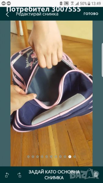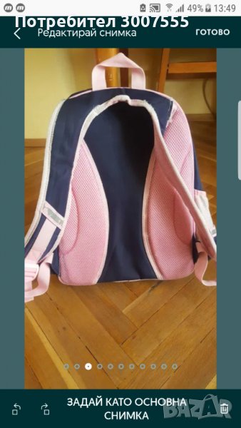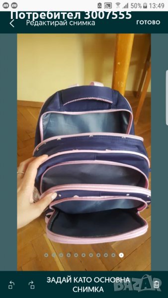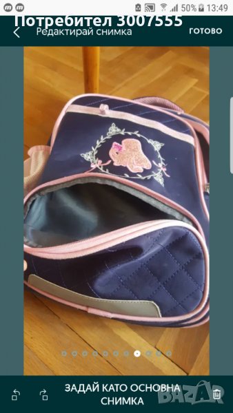 Ученическа раница с ортопедичен гръб.Изключително удобна и лека.Има 4 джоба, като в най-големия има вътрешен джоб с мрежа и цип.На най-предния джоб има светлоотразителна лента.Циповете работят идеално.Презрамките са меки,удобни и не прежулват.Цвят тъмно синьо и розово,при дъжд не се мокри бързо. ЛИЧНО ПРЕДАВАНЕ