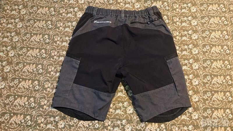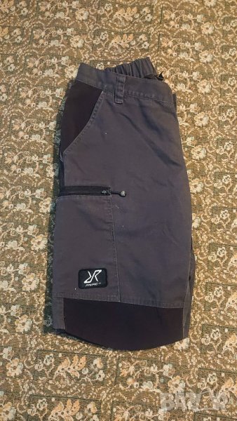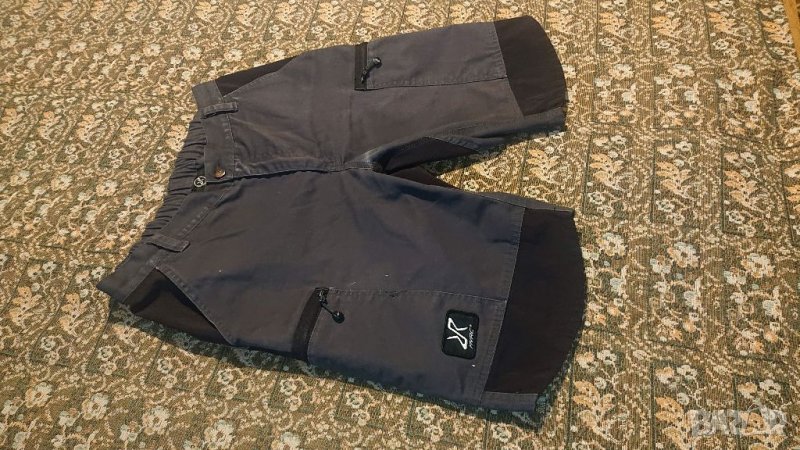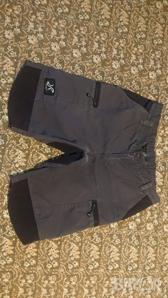 Късите панталони са в отлично функционално състояние. Имат минимални следи от напръскано (снимано е), леко износване между краката - промяна на цвета, като изсветляване при дънки - повече ефект, отколкото дефект. Размери: Дължина мерена отстрани 53 см. На кръста (с ластик) 42 - 47 см.