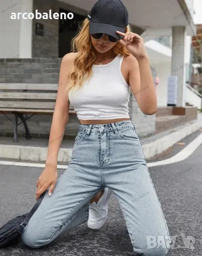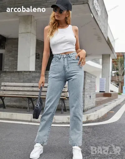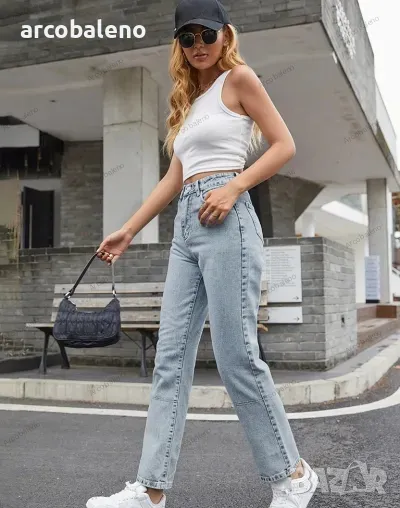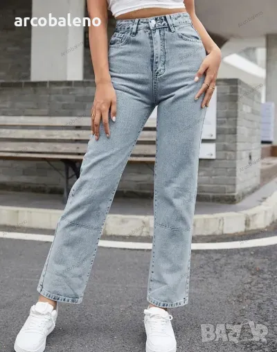 Дамски дънки с прав крачол с висока талия, 3цвята