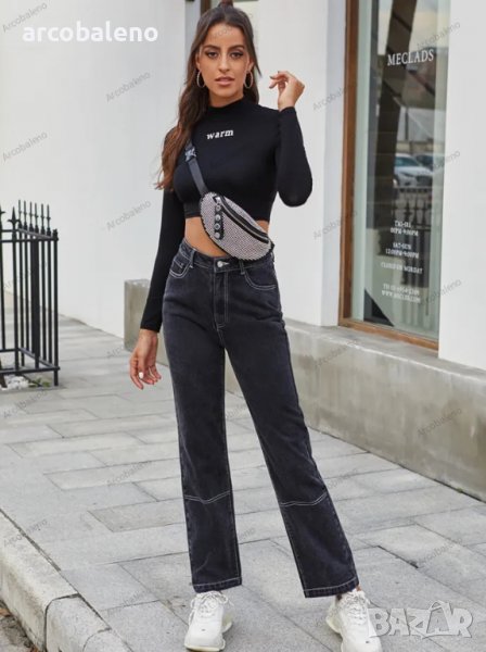 Дамски универсален дънков панталон с висока талия и прави крачоли, материята е мека и удобна. Повод: Ежедневно, пътуване до работното място. Методът на пране може да бъде машинно или ръчно пране. Материята е устойчива на намачкване и на начупване. Размерът се измерва на ръка, като е нормално да има грешка от 1-3см.