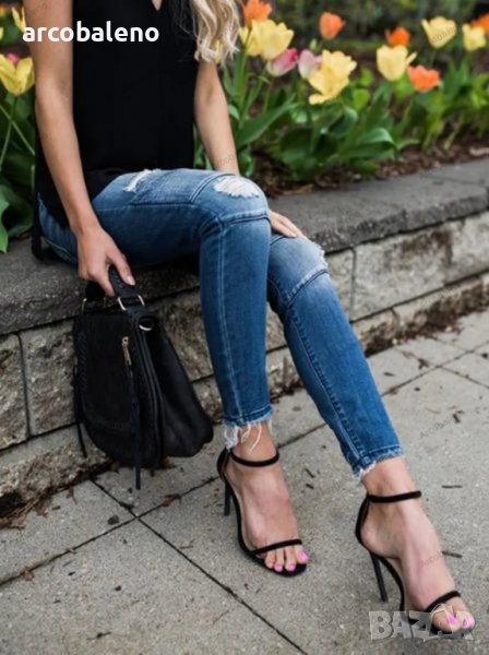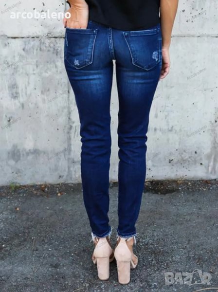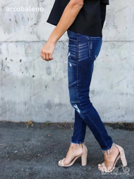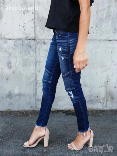 Дамски вталени плисирани унищожени еластични пени дънки, 3цвята