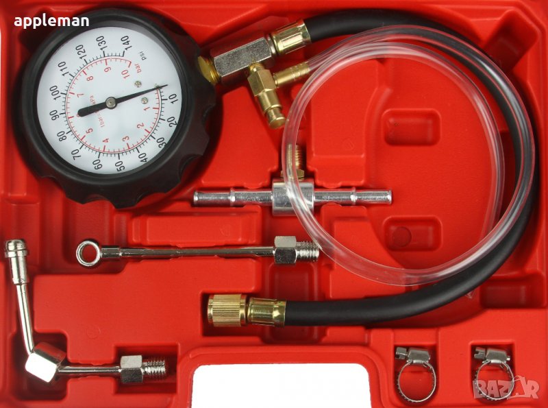 Комплект за измерване на налягането на масло / гориво комбиниран MARPOL е универсален и многофункционален комплект за диагностика на грешки в системното налягане, който се свързва директно към горивната помпа. Може да се прилага на повечето марки автомобили ( Acura, Alfa Romeo, Audi, BMW, Chrysler, Daihatsu, Eagle, Fiat, Ford, GM, Geo, Honda, Hyundai, Isuzu, Jeep, Jaguar, Mazda, Mercedes Benz, Mitsubishi, Nissan, Peugeot, Porsche, Renault, Saab, Subaru, Suzuki, Toyota, Volvo и др. ). Комплектът включва адаптери и фитинги, подходящи за повечето системи за впръскване на гориво и манометър с двойна скала: 0 - 140 psi и 0 - 10 бара. Манометърът с двойна скала позволява отчитане налягането на изгаряне на горивото в двигателя. Той има гумено покритие, което го предпазва от повреда след падане.