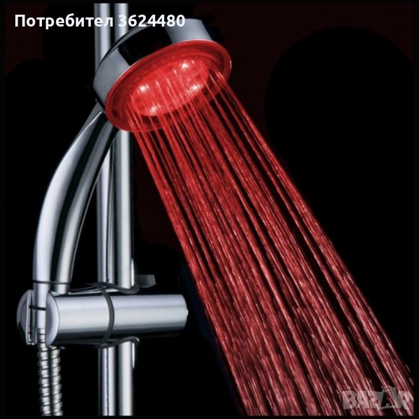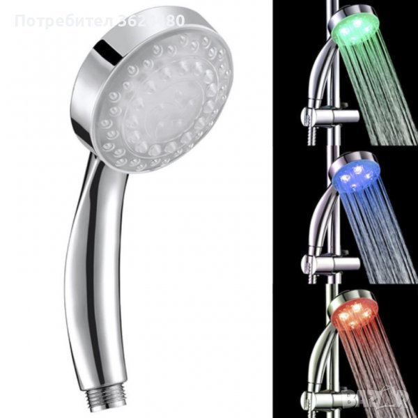 3 цвята на светене: зелен/син/червен (според температурата на водата )
