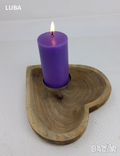 Свещник-дърворезба с форма на сърце,