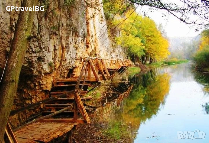 гъста и тучна. Пътеката се вие между реката и отвесни скали и е с