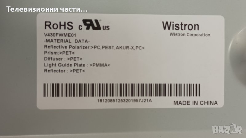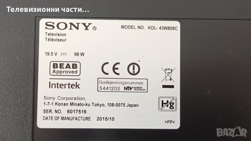 Sony KDL-43W808C с дефектен екран.Останалите платки гарантирано работят. Панел V430FWME01