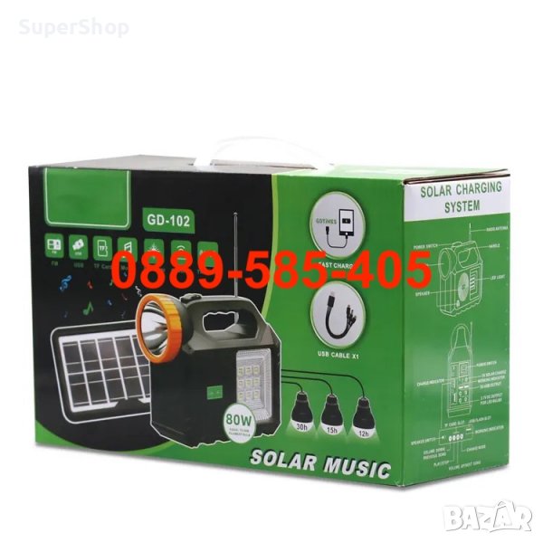 Соларна Къмпинг Система с LED Осветление Колона Радио PowerBank лампа фенер bluetooth